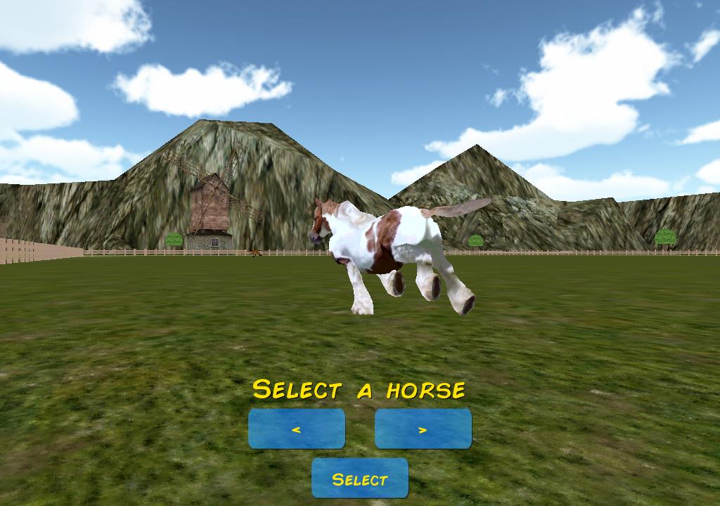 3D赛车游戏与马车。您可以在多匹马之间进行选择。