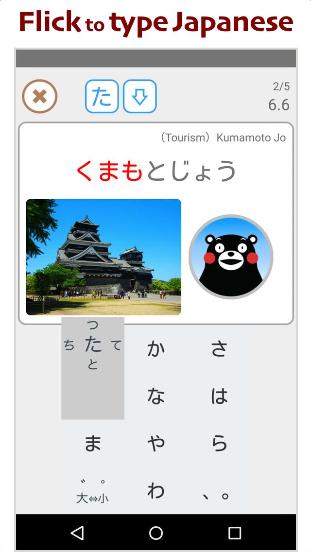 练习如何使用Flick Intup键入日语并了解Kumamoto!