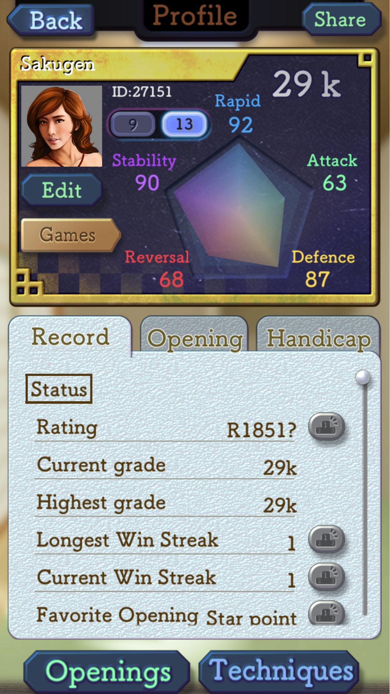 - 播放器的级别由流行的Dan-Kyu系统以及更统计上准确的ELO评分系统评估。
