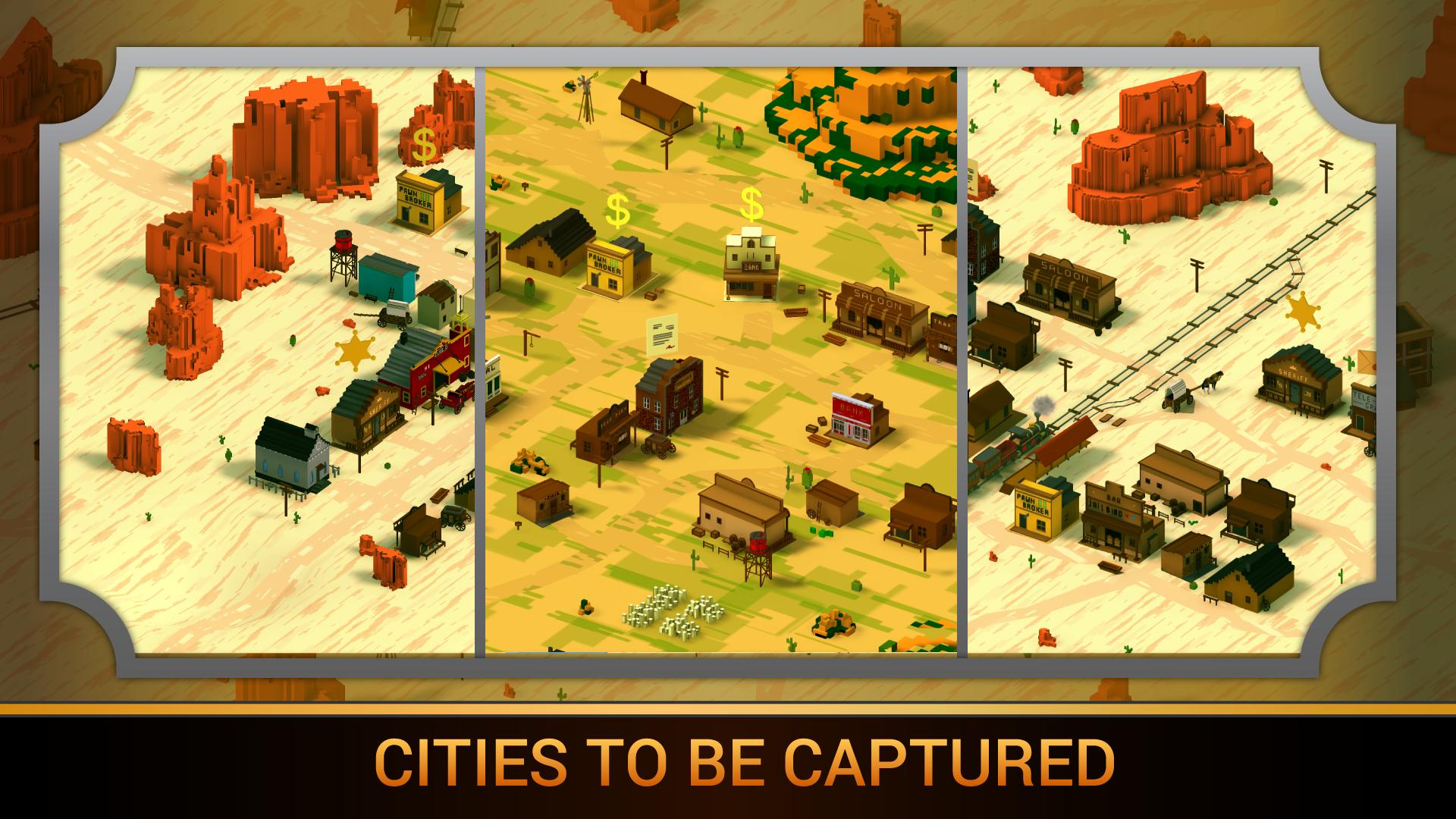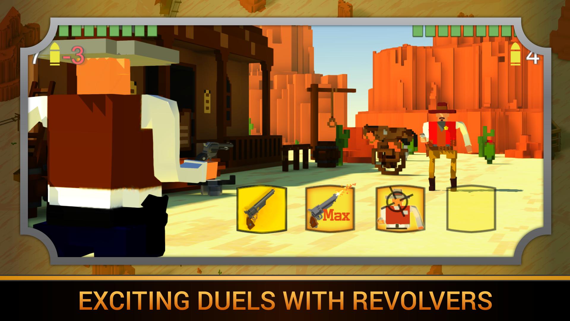 大草原,沙漠,平原和城市 - 都有五颜六色的3D图形。旅行,升级您的角色,并赢得决斗!与您不选择的任何人(Hershiff或Rubber,Cowboy或Outlaw)发动战争,通过一个人从他们身上捕获城市,直到您统治着他们的整个州。成为最好的枪手。