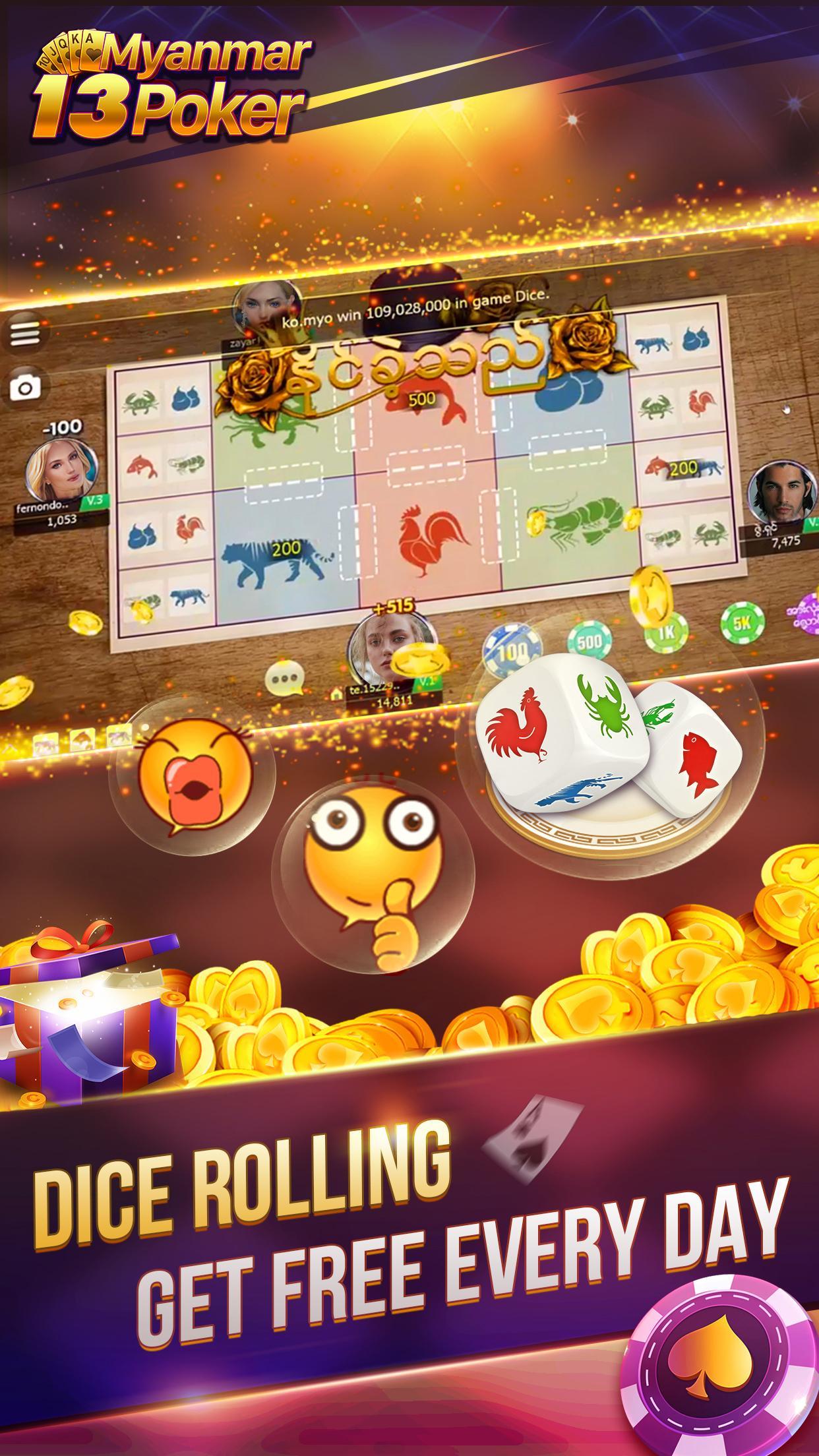 缅甸门户游戏: Myanmar 13 Poker ,Shan Koe Mee,Hoo嘿,缅甸缅甸在线游戏;缅甸13 Shan Nine,Hu Hu,缅甸13张在缅甸的卡片,在最受欢迎的缅甸受欢迎的游戏中发行。玩可能被阻止和丢失的游戏。数据非常放松,互联网很好且易于播放。简单,简单的游戏和新的挑战。如果您的朋友邀请您参加游戏中的500,000筹码和您的朋友。由于您的朋友和您的朋友,您和您的朋友很简单。它是一个有吸引力的游戏。下载缅甸13张卡片并发出奖金。