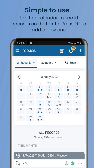 PACKTRACK以其广泛的节省时间功能而闻名。处理人员从成熟的记录保存系统中受益,并全力支持K9检测和巡逻工作。记录可以在台式计算机,平板电脑或使用移动应用程序中输入。内置位置跟踪系统使记录培训和部署活动变得易于一步。