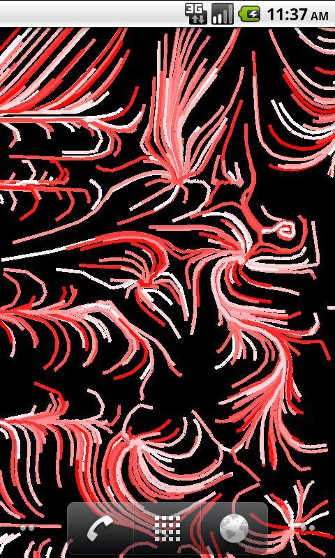 这个实时墙纸会增强五彩羽毛扭曲的形状。观看它自己绘制,添加一行,逐渐填充屏幕。