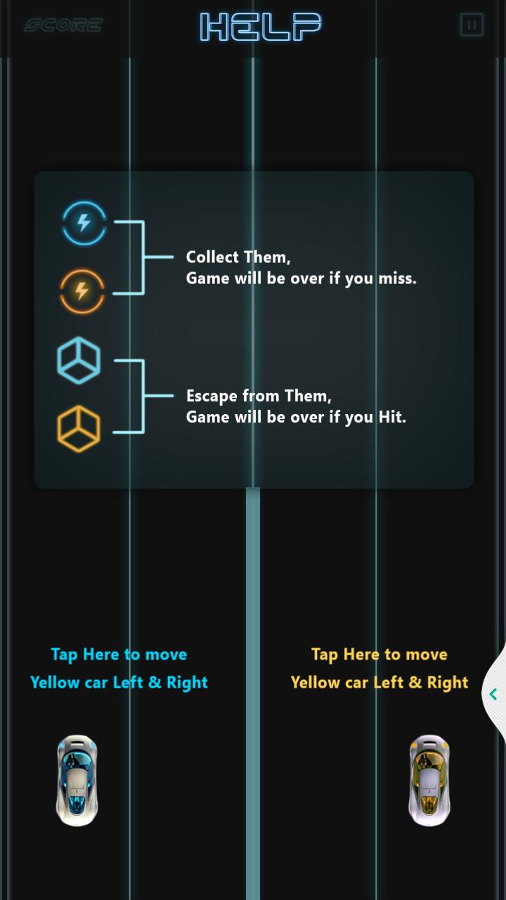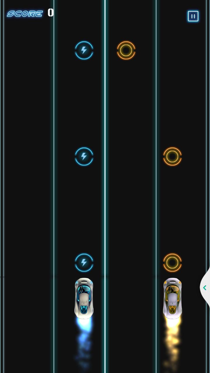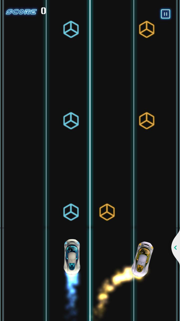 触摸左屏幕以移动左车辆和右轨道的轨道以移动右车辆。