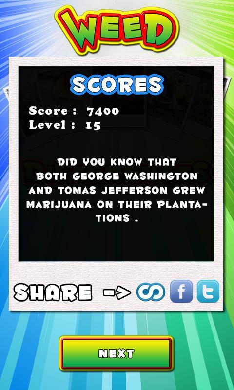 ✔在玩游戏时,在Twitter和Facebook上学习/分享有关大麻的有趣事实和好奇心 - 只有15个事实/好奇心可用于展示目的