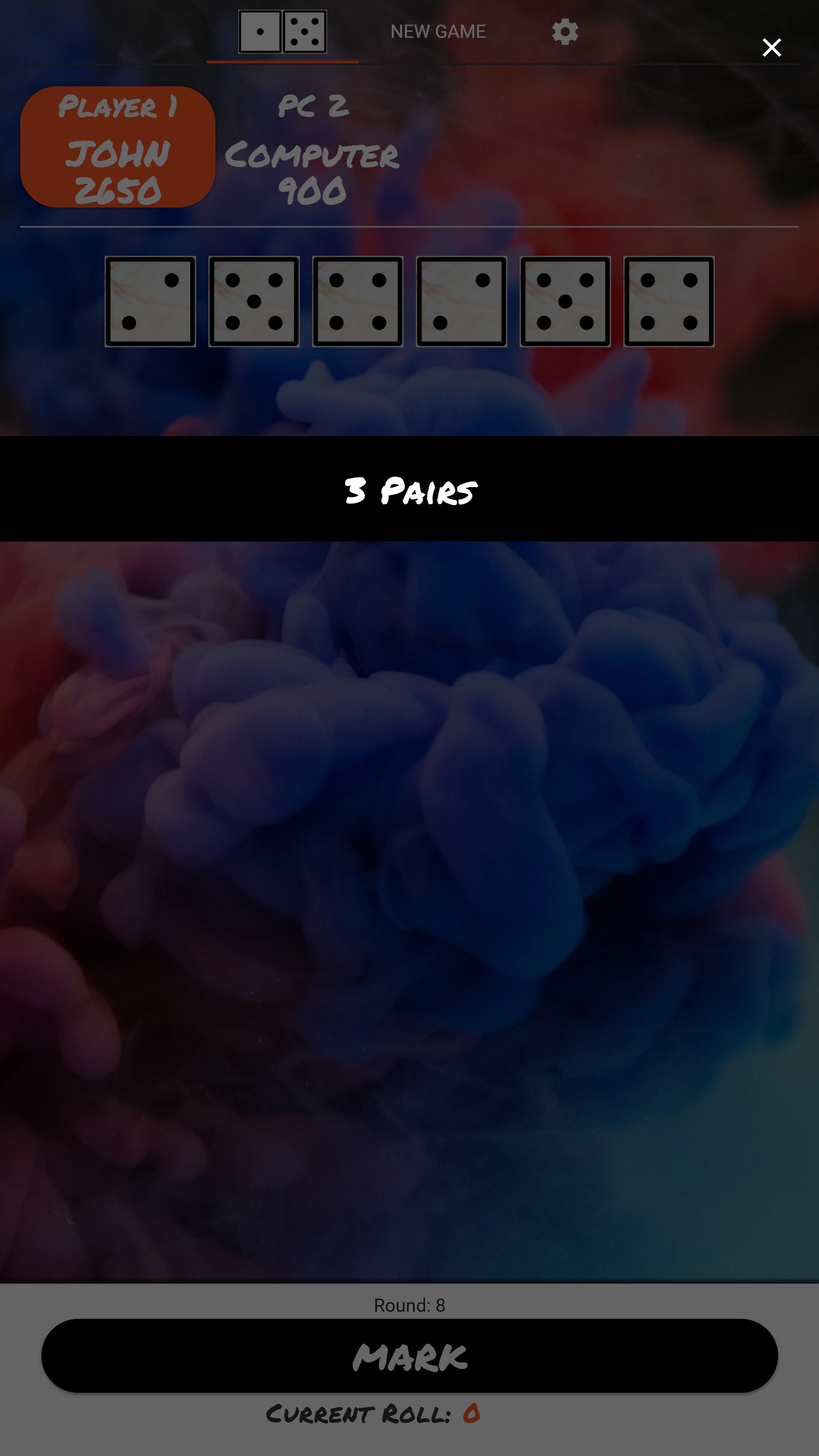 - 如果您不破產,則可以選擇1和5,三倍,四倍和選擇的五分之一,並通過擊中“ Mark”並將其鎖定。然後決定在剩下的骰子上再次滾動或結束輪迴。