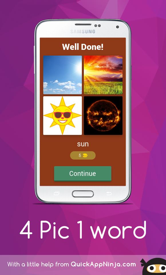 它涉及猜測正確的單詞,該單詞描述了屏幕上顯示的4個圖片。