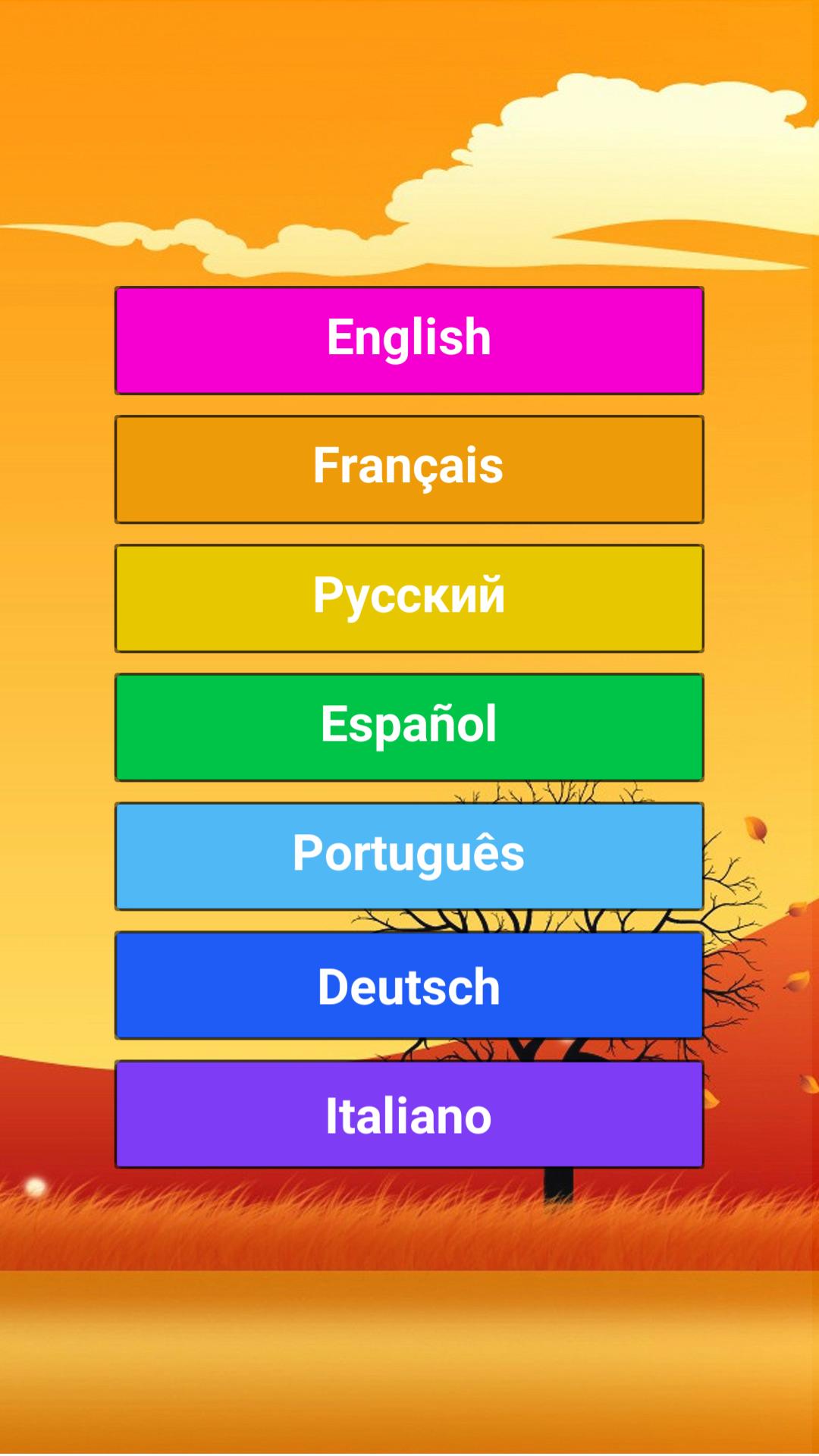 - 該遊戲有七種語言:英語,法語,俄語,西班牙語,意大利語,德語和葡萄牙語。
