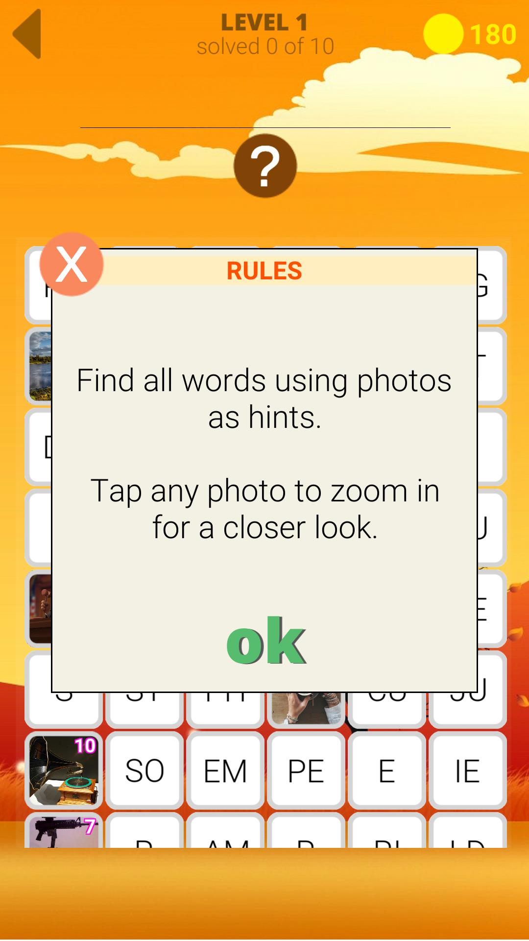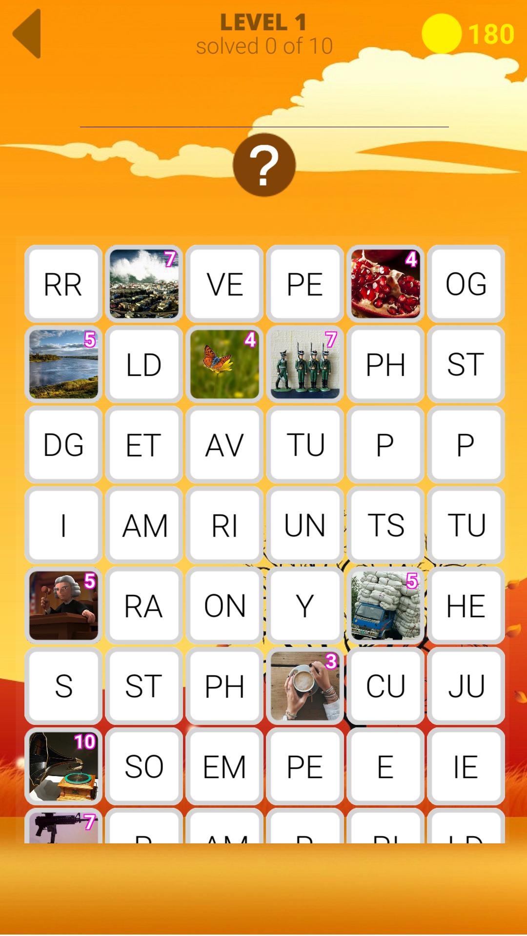 猜猜隱藏的單詞使用照片作為線索,這些單詞被分為片段,拼圖與簡單的單詞不同,其解決方案需要幾秒鐘的時間和復雜的單詞,其解決方案必須花費大量時間。