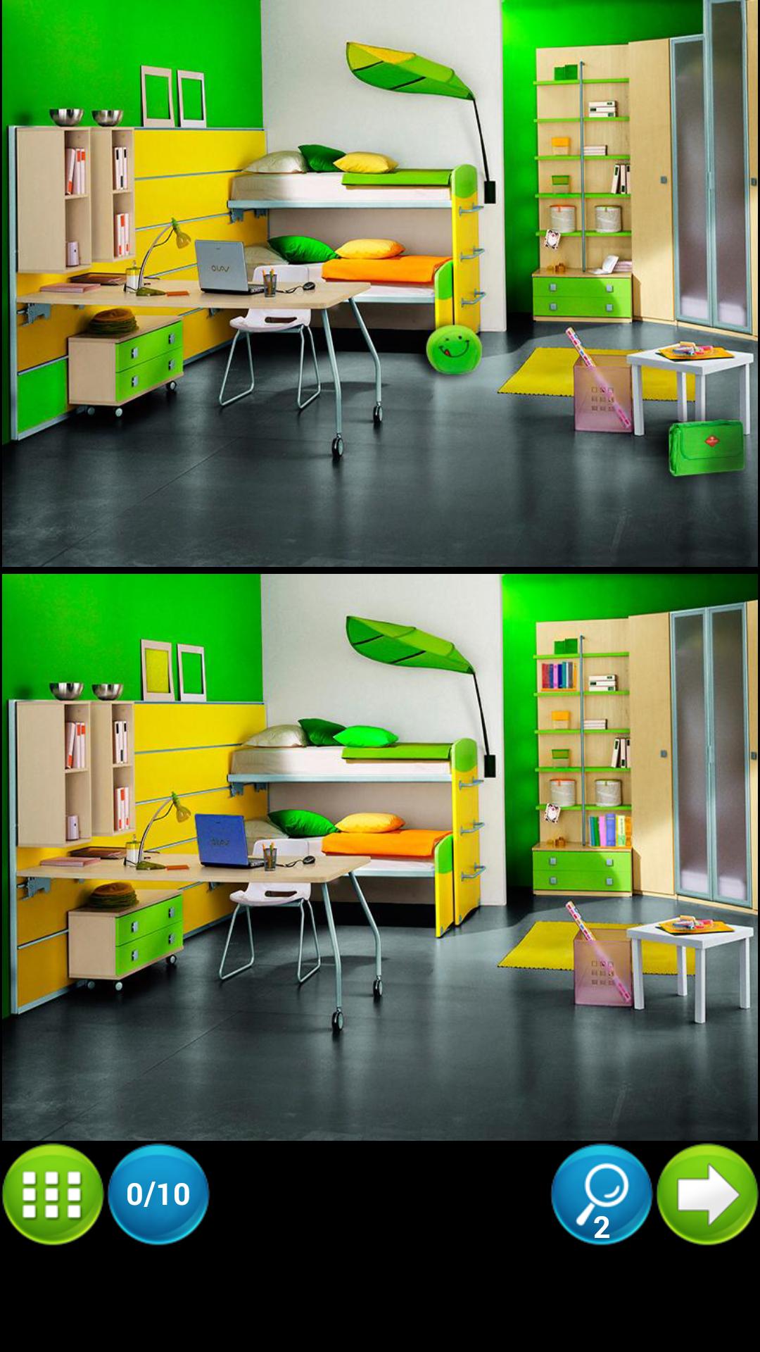 在這個益智遊戲中,您必須找到兩張圖片之間的10個差異。