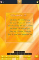 您知道這首歌的一些歌詞,對嗎?好吧,我希望您可以猜測這款猜測遊戲歌詞中歌曲的歌詞。因為您必須記住將在此測驗中出現的歌曲的歌詞!我將用下面的歌詞中的幾句話進行測試。而且您只是獨自回答標題。