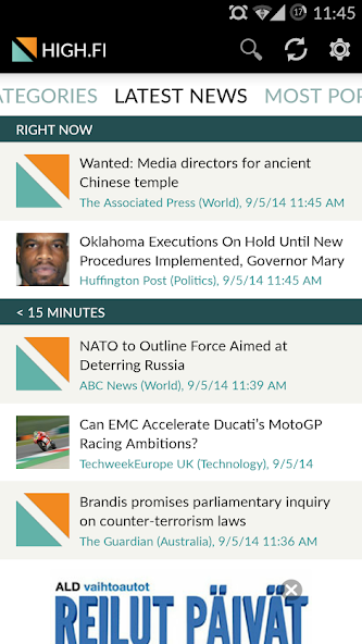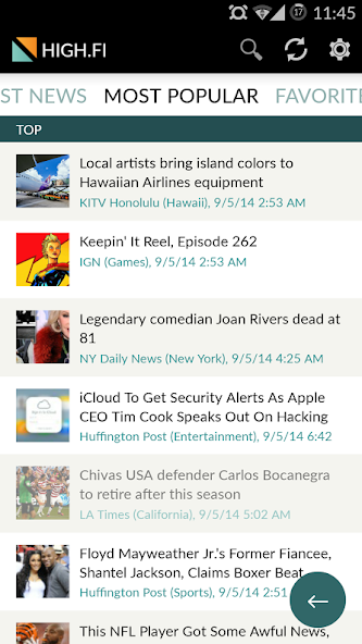 HIGH.FI is a new kind of RSS news reader, that constantly updates news from thousands of news sources and shows them in chronological order, categorized for easy reading.