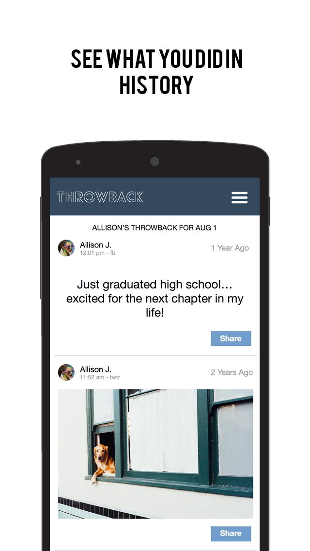 Throwback是您的懷舊日常劑量。沿著記憶巷(Memory Lane)旅行,每天看到您的社交媒體時間表。查看潛伏在Facebook時間表上的那些舊的Facebook狀態。