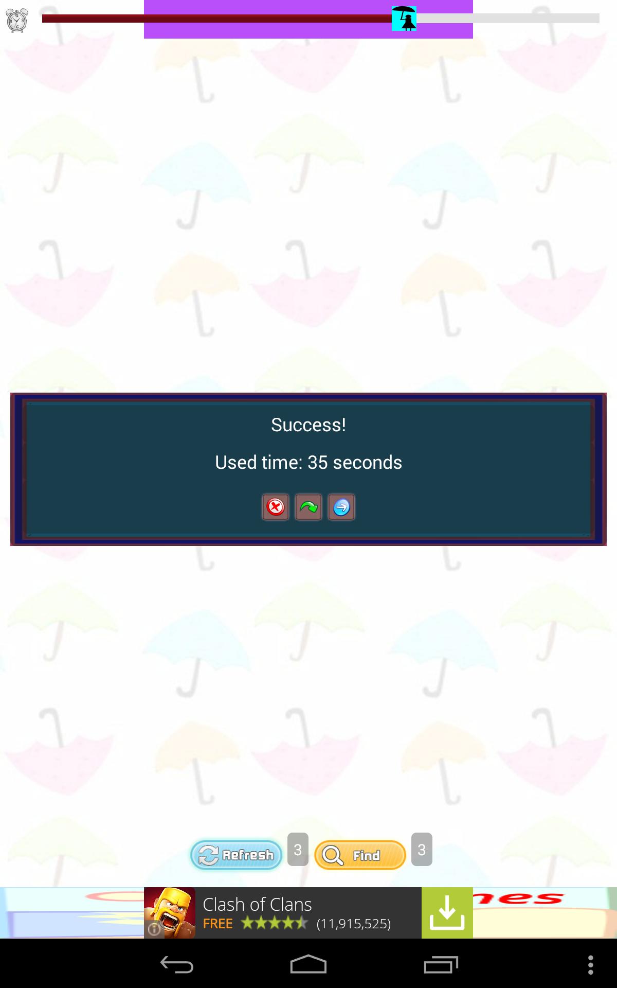 Umbrella Match Game中的第一輪比賽是100秒,您成功完成了比賽,在那之後的每一輪比賽都要少10秒。因此,隨著您在遊戲中變得更好,您就有更少的時間完成每輪。